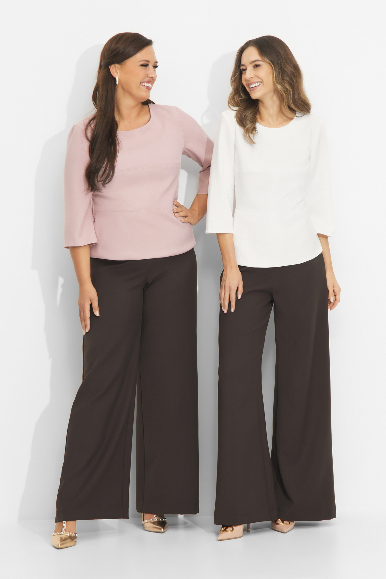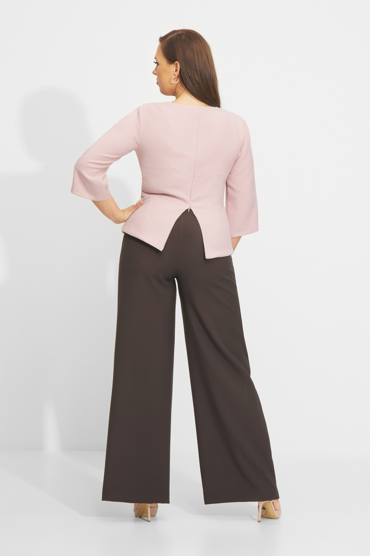 MILA – Komplet składający się z klasycznej bluzki lekko taliowanej z rękawami i spodni o prostej nogawce z wysokim stanem