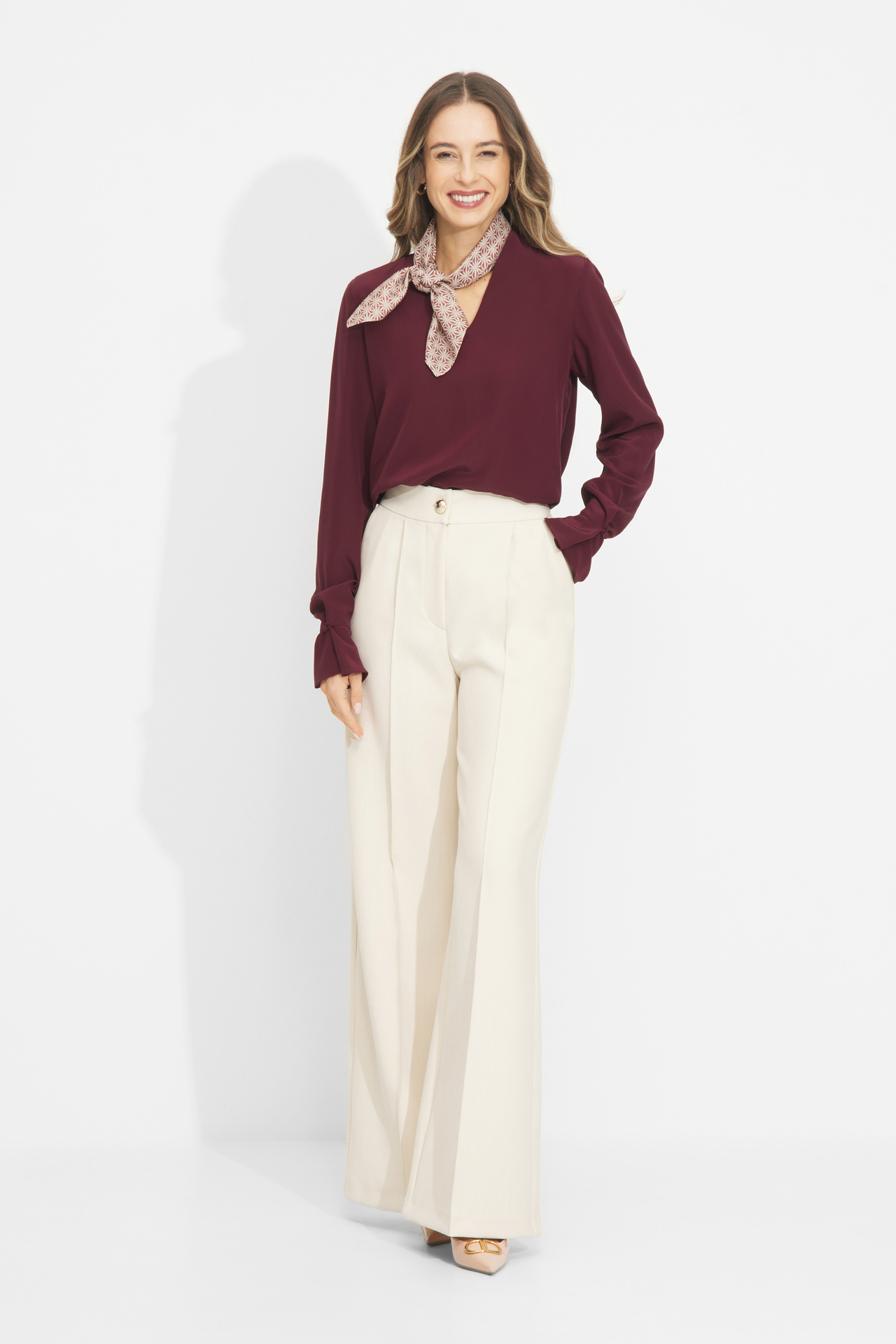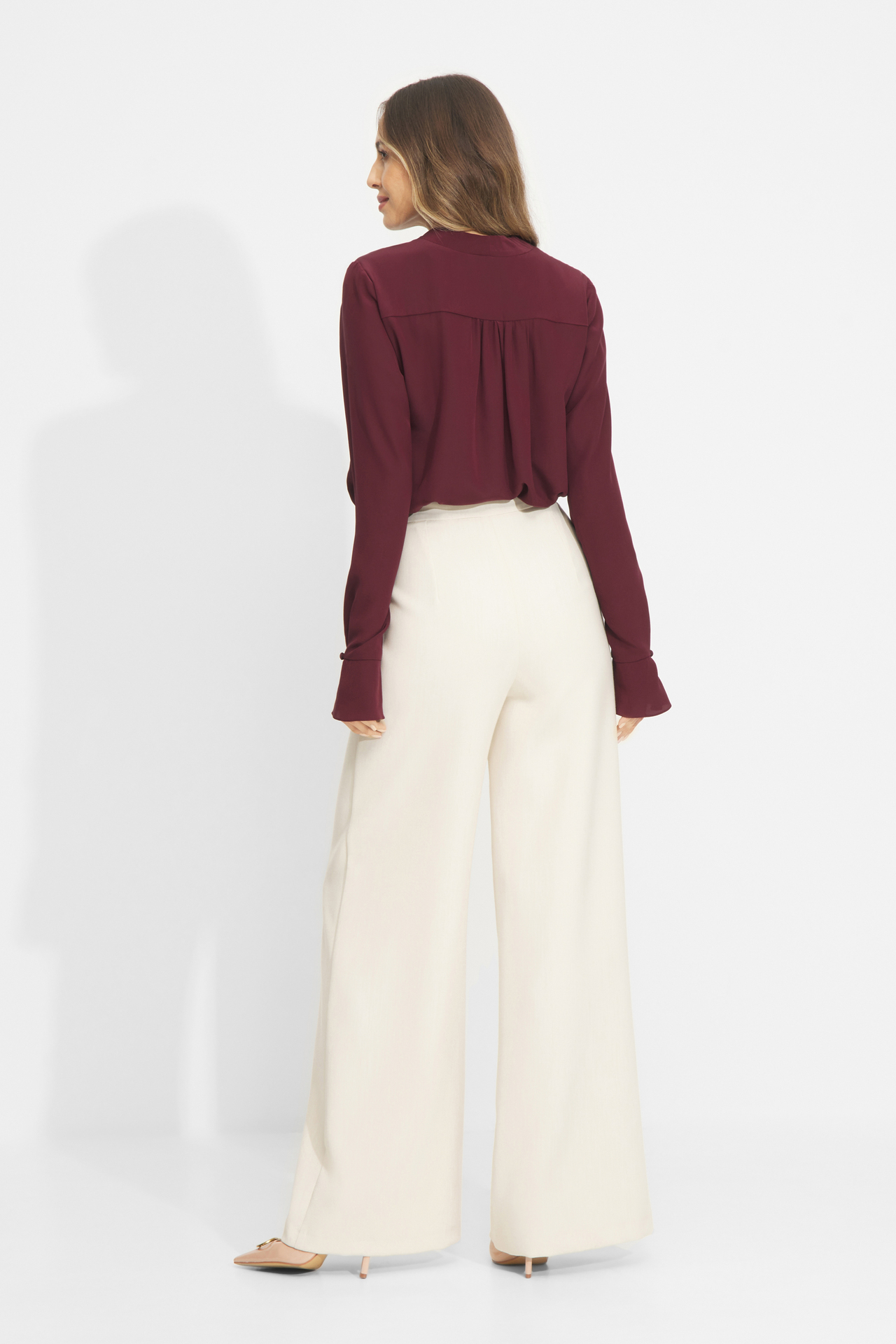 Zobacz ProduktZobacz Produkt MILA – Komplet składający się z klasycznej bluzki lekko taliowanej z rękawami i spodni o prostej nogawce z wysokim stanem 599,00 zł